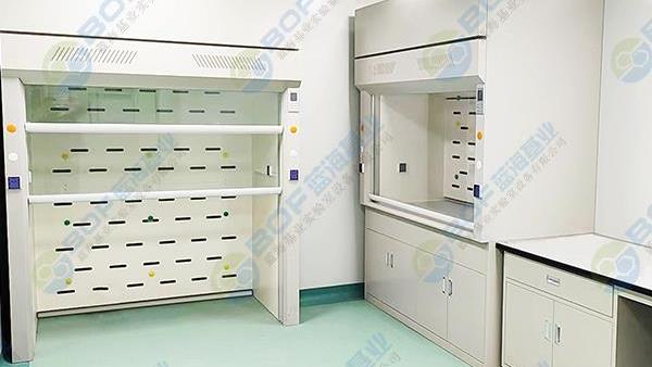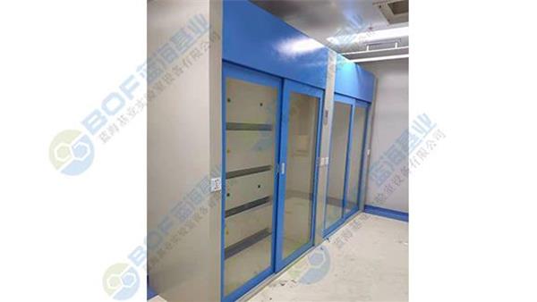 A、上部排氣柜:采用頂吸式抽氣管道,內部分三段式排風設計,以抽掉不同比重的各類有毒氣體